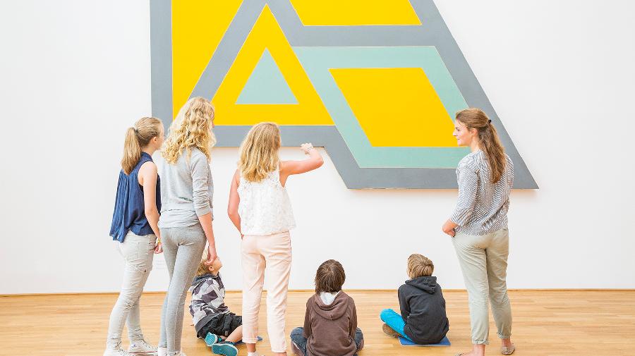 Kinder schauen ein Bild im Museum an